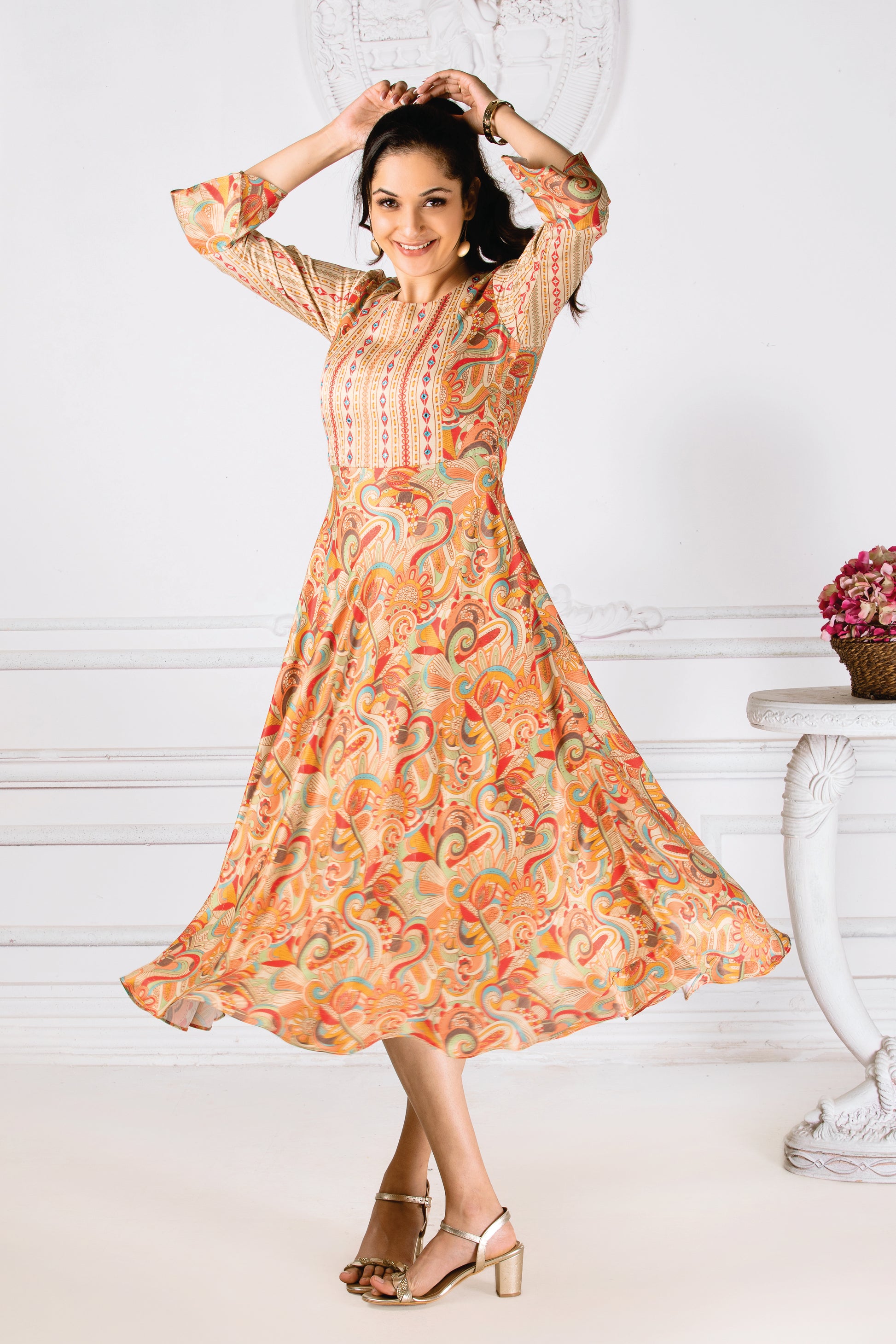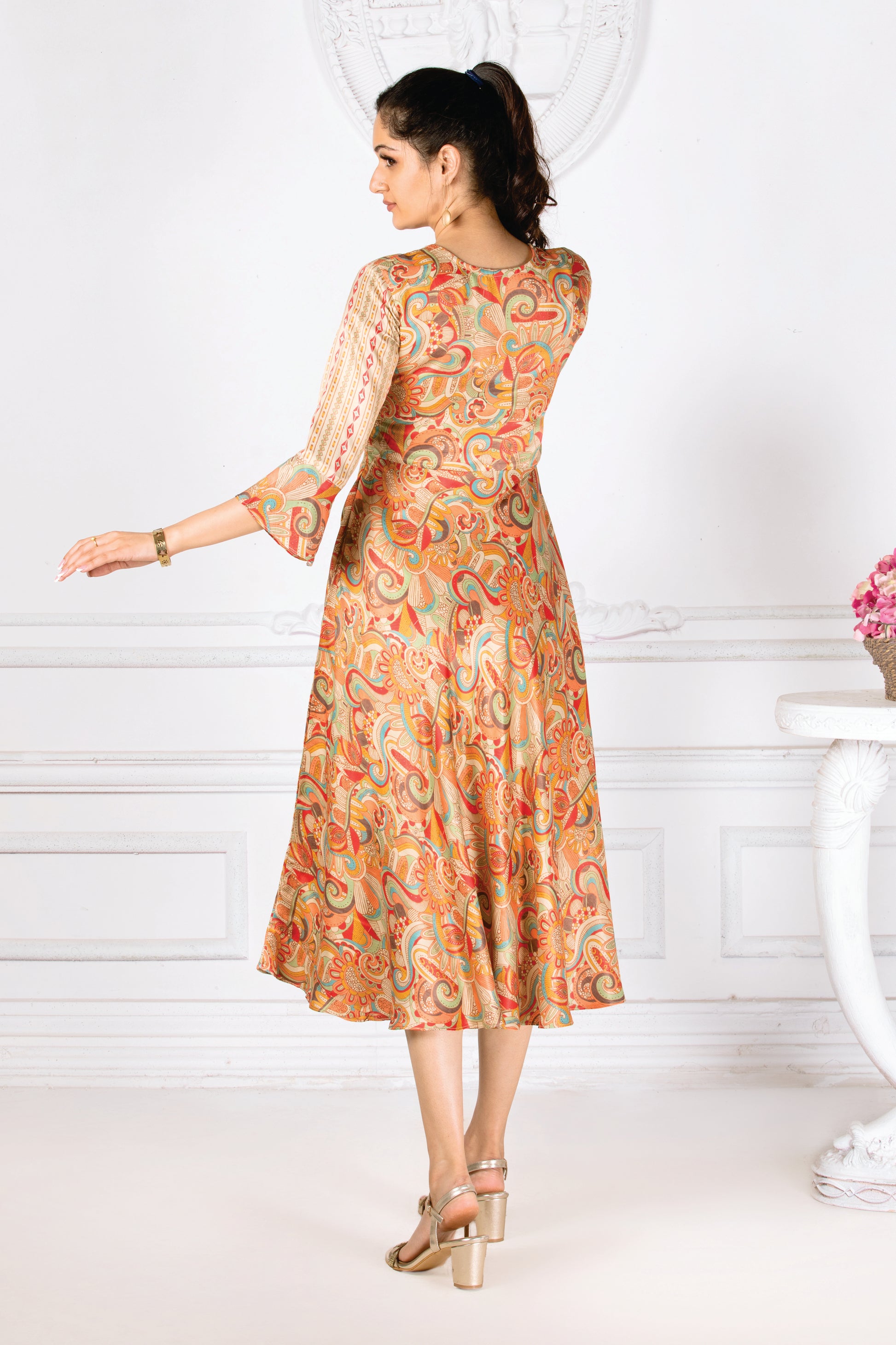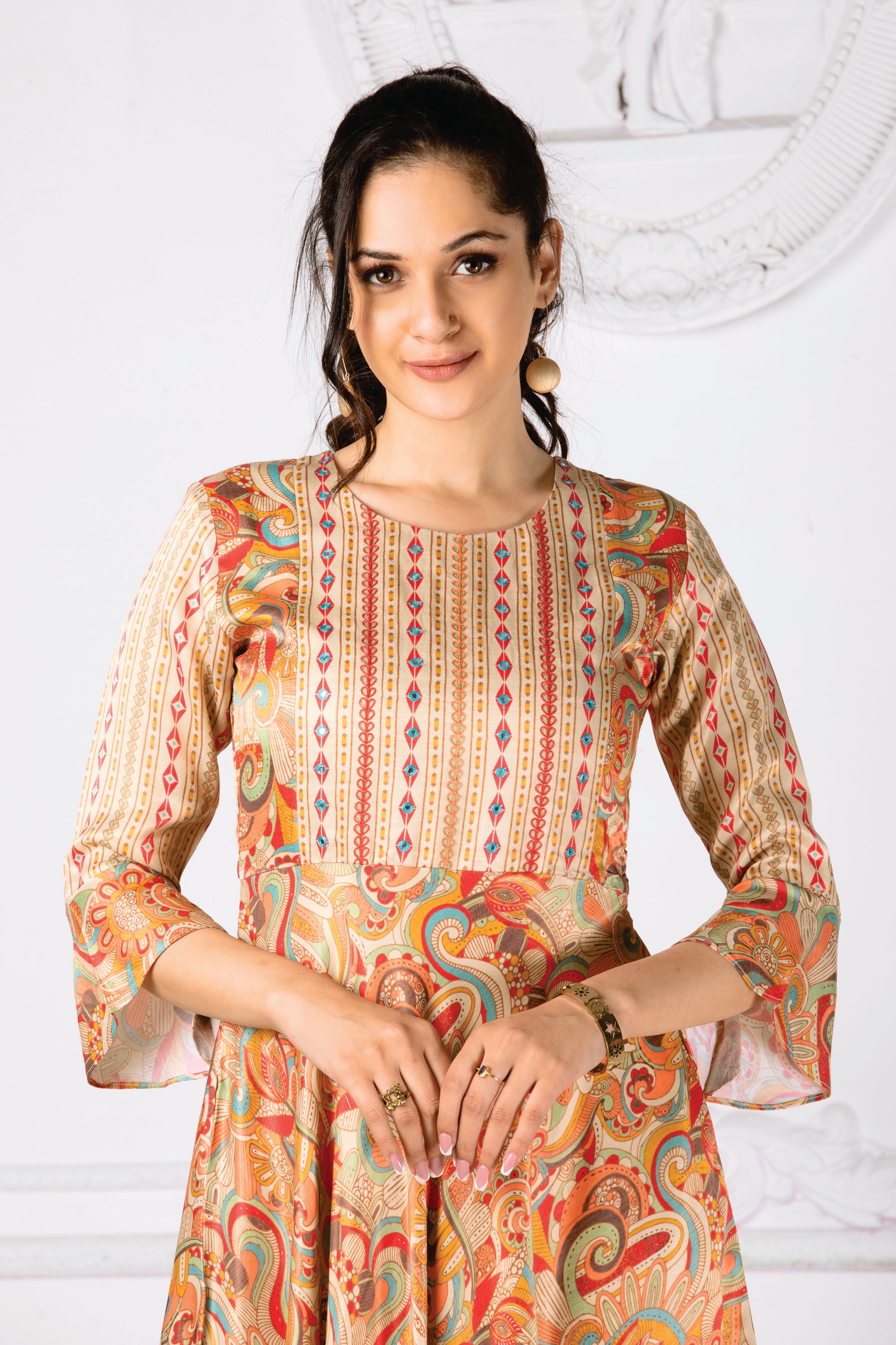 The multicolour satin fabric gives it a chic as well as elegant look.