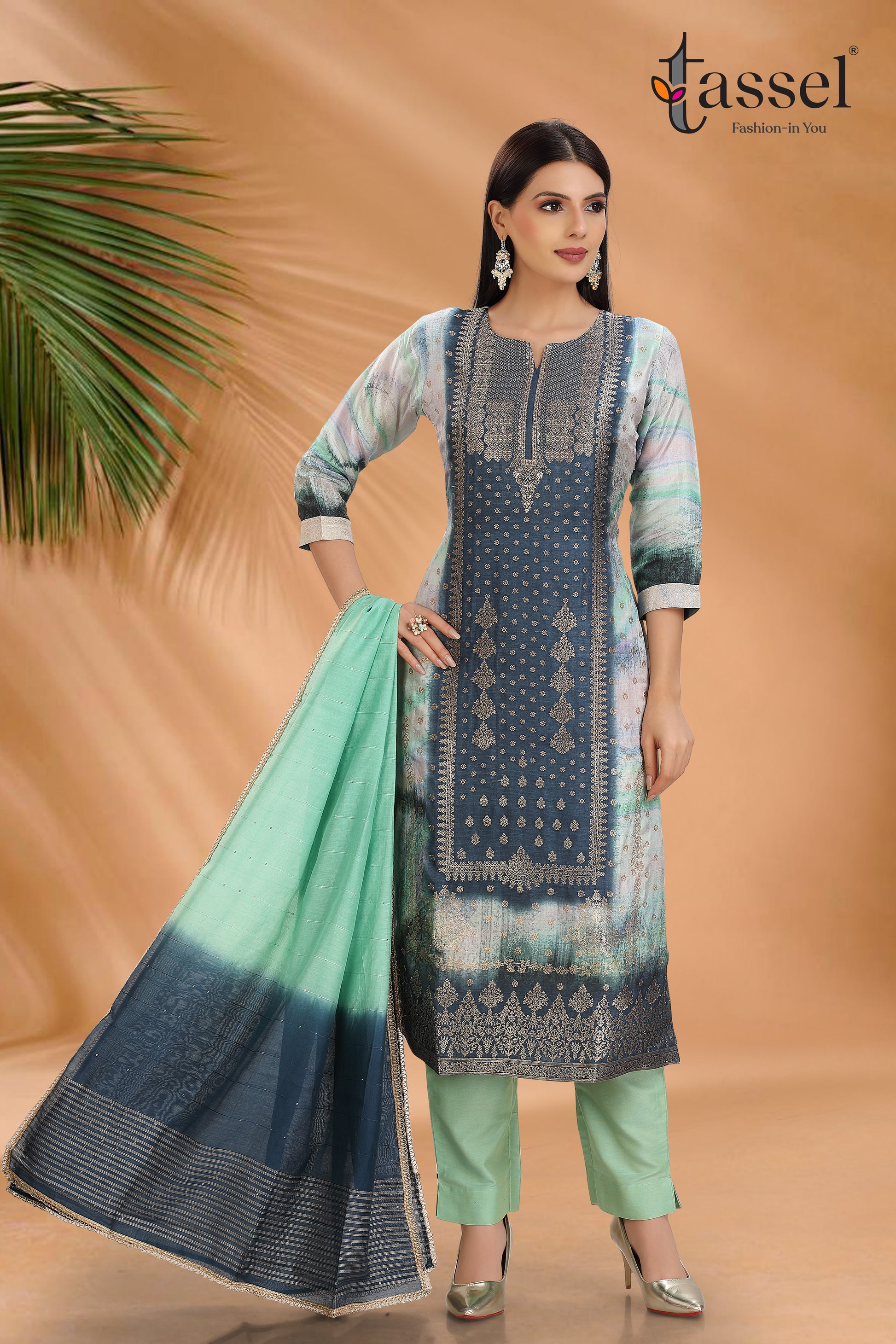 Exclusive Silk Jacquard Kurta(with lining) paired with rama pants and  Zari shaded Dupatta