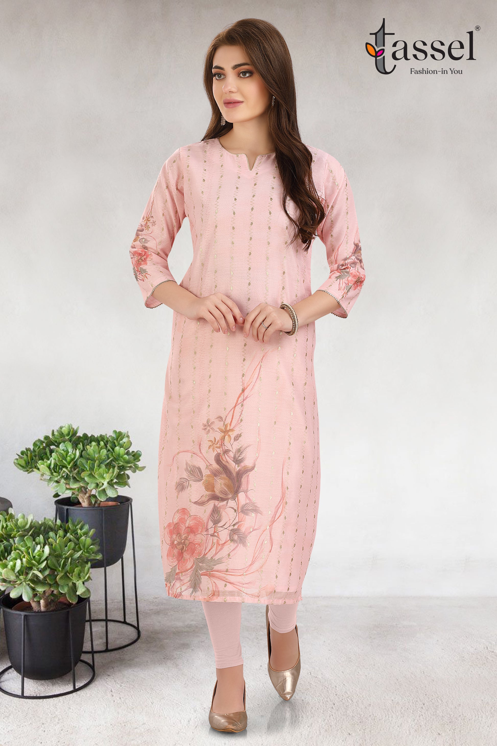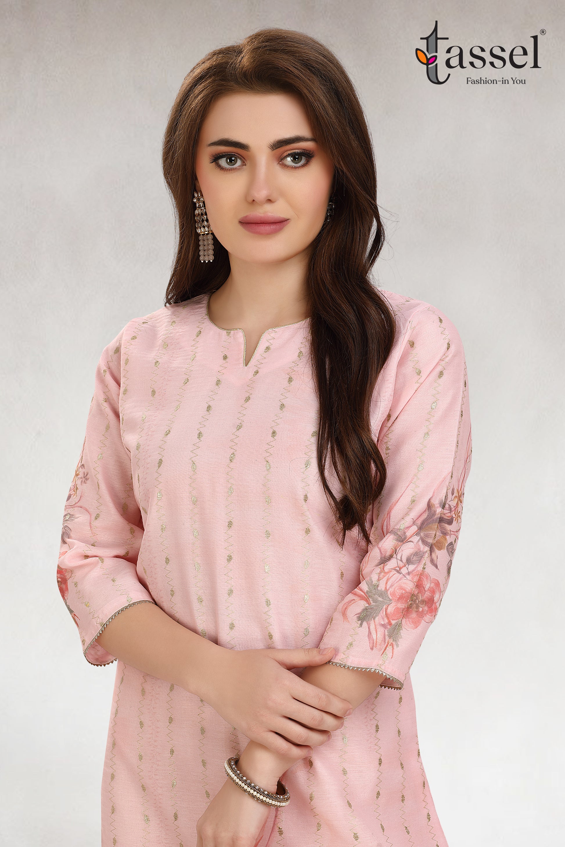 Chanderi kurti with zari embroidery and inner lining for everday workwear.