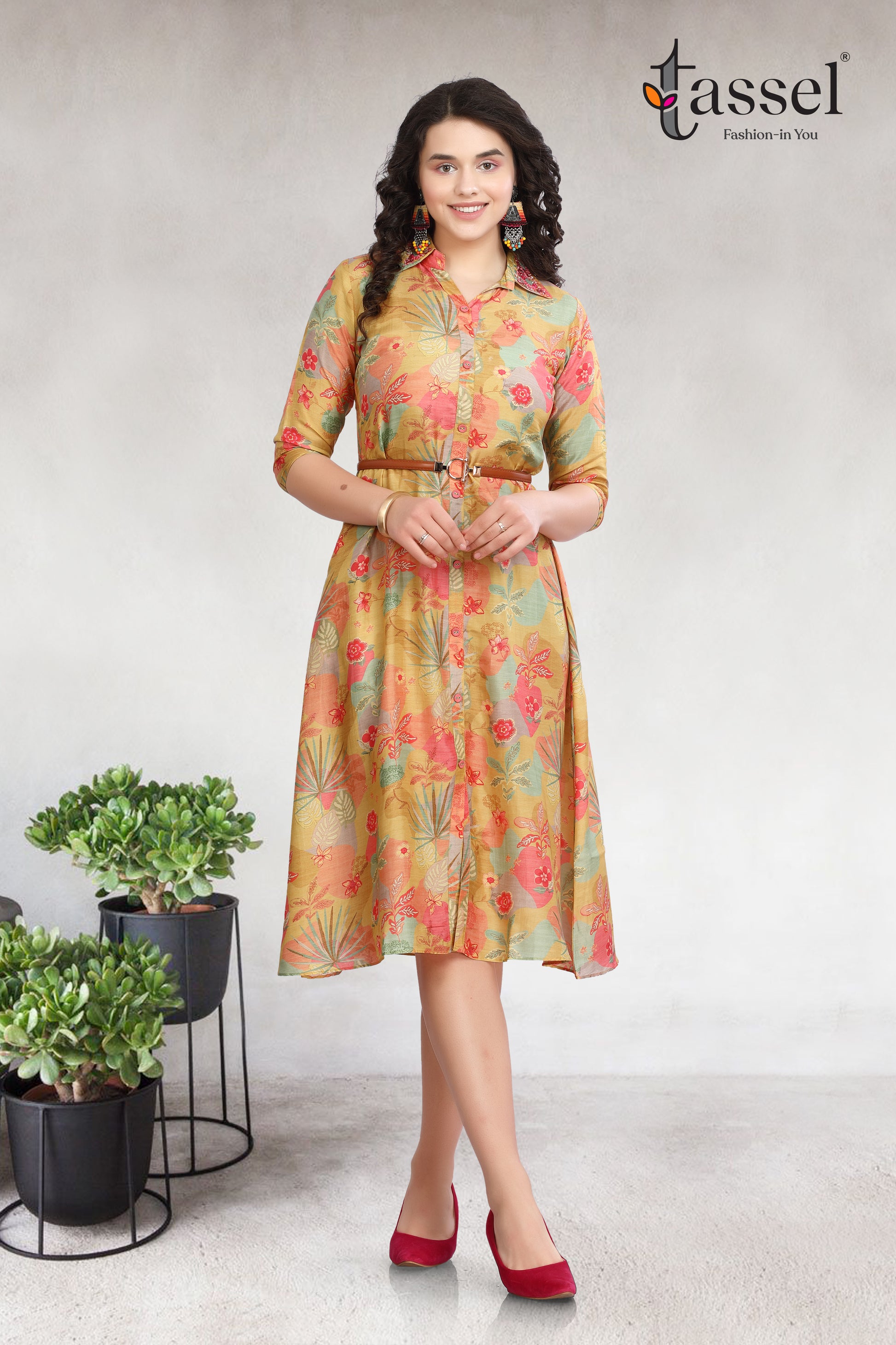 The shirt style midi dress is a fusion outfit with hand embroidery on the collar. Pair it up with a belt and get ready to slay.