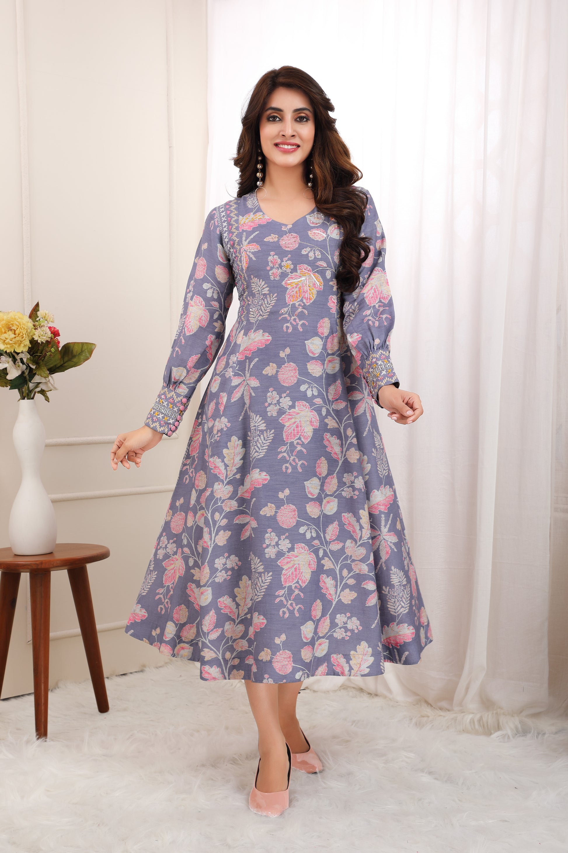 Best Seller Lavender midi dress with Resham & Sequins handwork.
