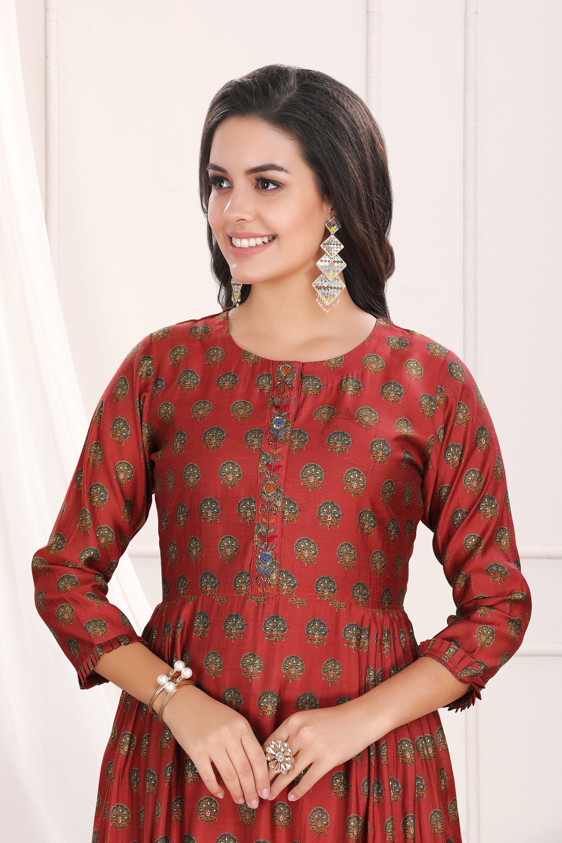 Maroon Mughal butti Kurta Pant